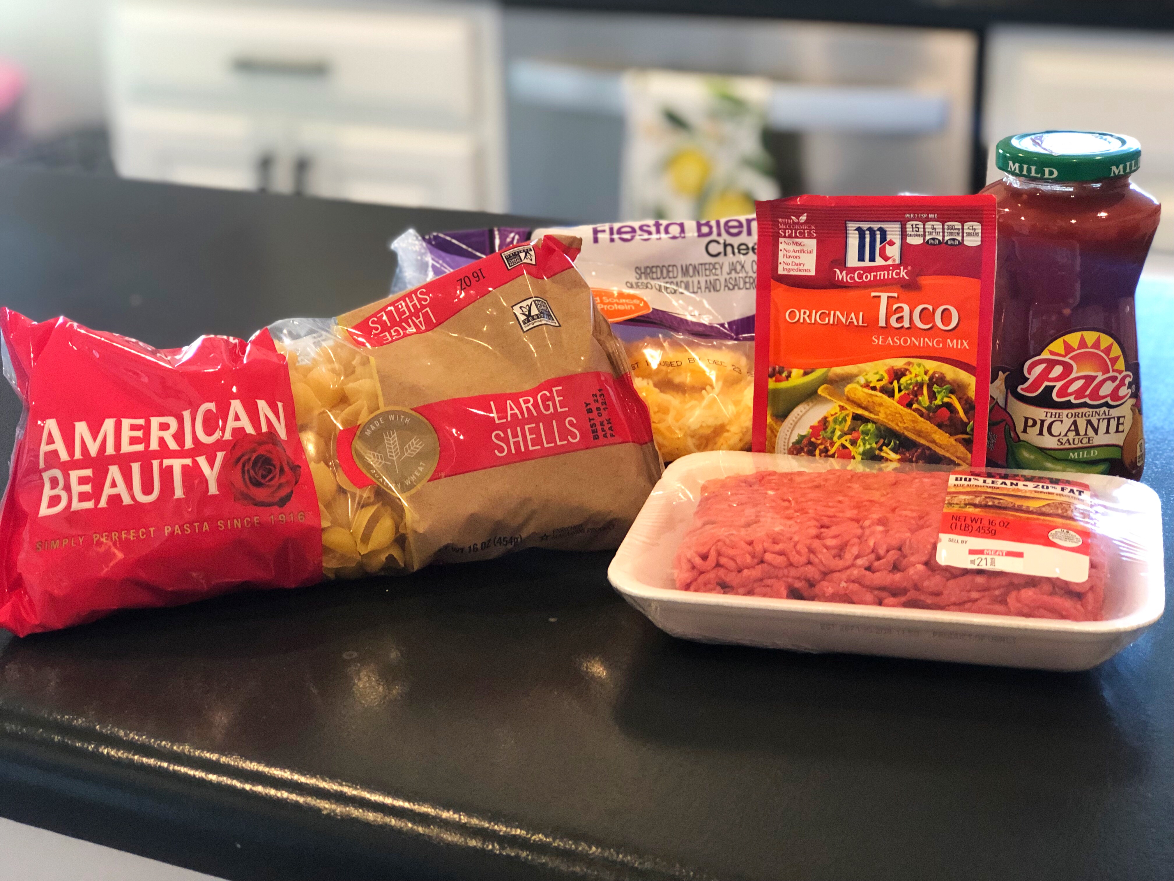 If you have these ingredients on hand then you are in luck because I have a super easy, super yummy recipe to share with you from Dinner Then Dessert. Is there anything better than contemplating what to make for dinner, AGAIN, and then seeing someone post about what they are making for dinner and you get excited because you realize you have the ingredients for that too and now you don’t have to decide?! I hope that is happening for you RIGHT NOW. I pretty much always keep these ingredients on hand because there are so many recipes I can make with them but this is definitely one of our favorite. This Cheesy Taco Pasta is delicious and easy enough for my 11 year old to make it by herself which is always a bonus.