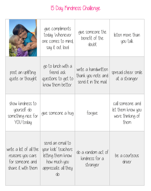 Enter the 15 Day Kindness Challenge. 15 days of being very intentional about doing small acts of kindness that help you become a little less selfish and a little more selfless. If I can keep repeating these 15 days of intentionally thinking of others then I’m on the road to creating the legacy I want to leave behind.