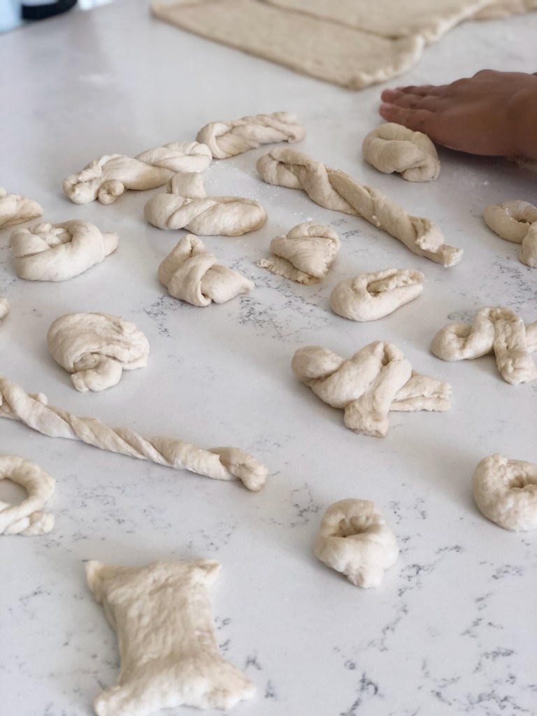 Soda bath, egg wash, salt, and bake. We also did a small batch of cinnamon sugar pretzel bites but I didn’t get a picture of those and although they were yummy, everyone loved the salt ones better anyway.