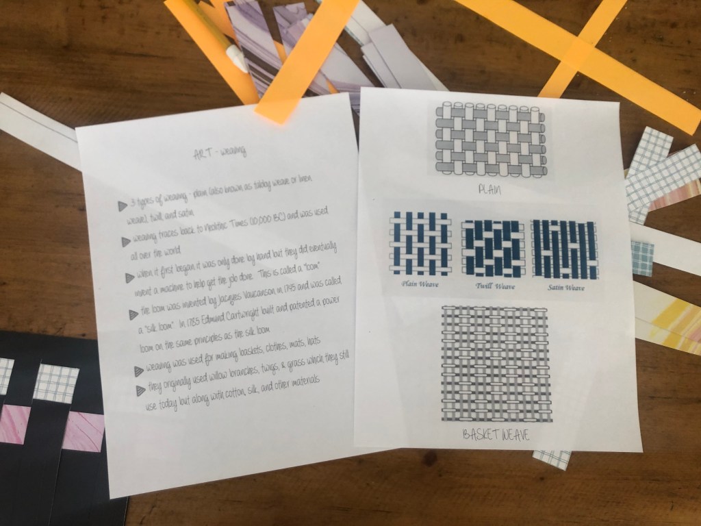 As usual I’m going to keep this super simple. For art, we learned all about weaving. Where it originated, the different types of weaves, what you would use each weave for and more. Then we put it into practice and did a fun craft.