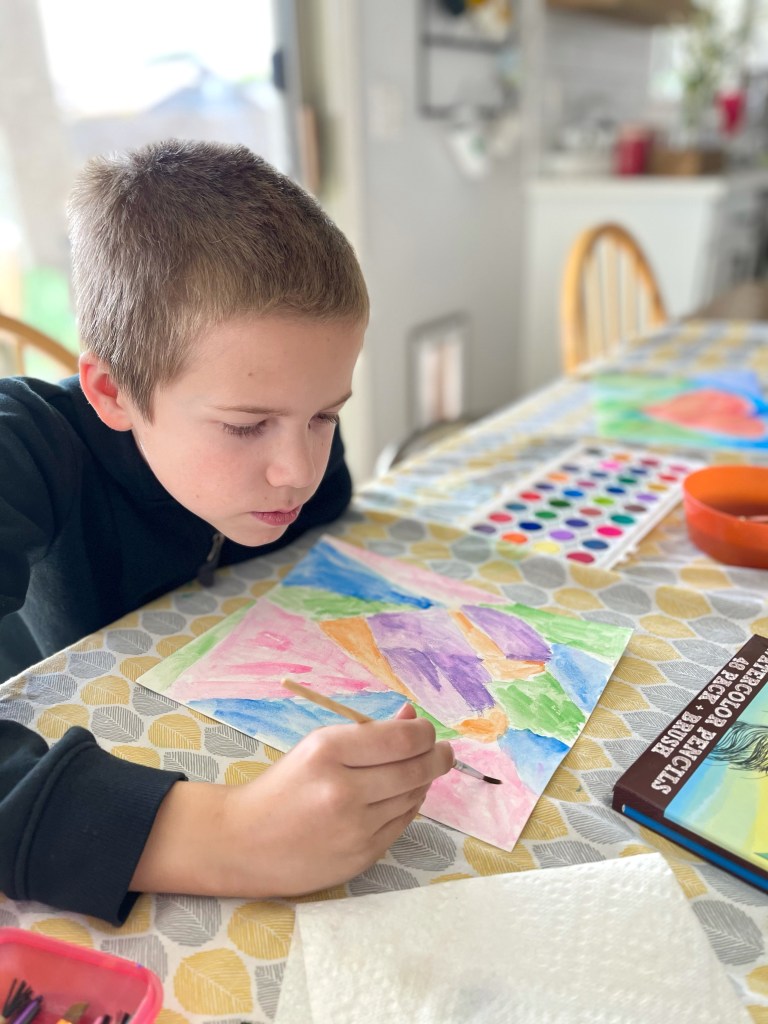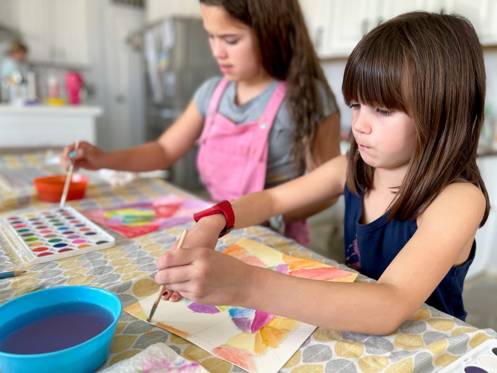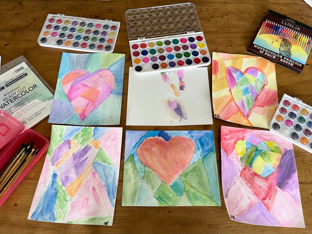 Look how cute they all turned out! We are excited to keep playing with watercolors and improve our skills over time. The best part of all of this was the creativity going on, conversation flowing and laughter throughout. You’ll never regret spending time like this with kids, but it also doesn’t have to be a time consuming, expensive, day project either. It’s all about balance and everyone’s “balance” is different. So don’t compare, have fun and make memories!