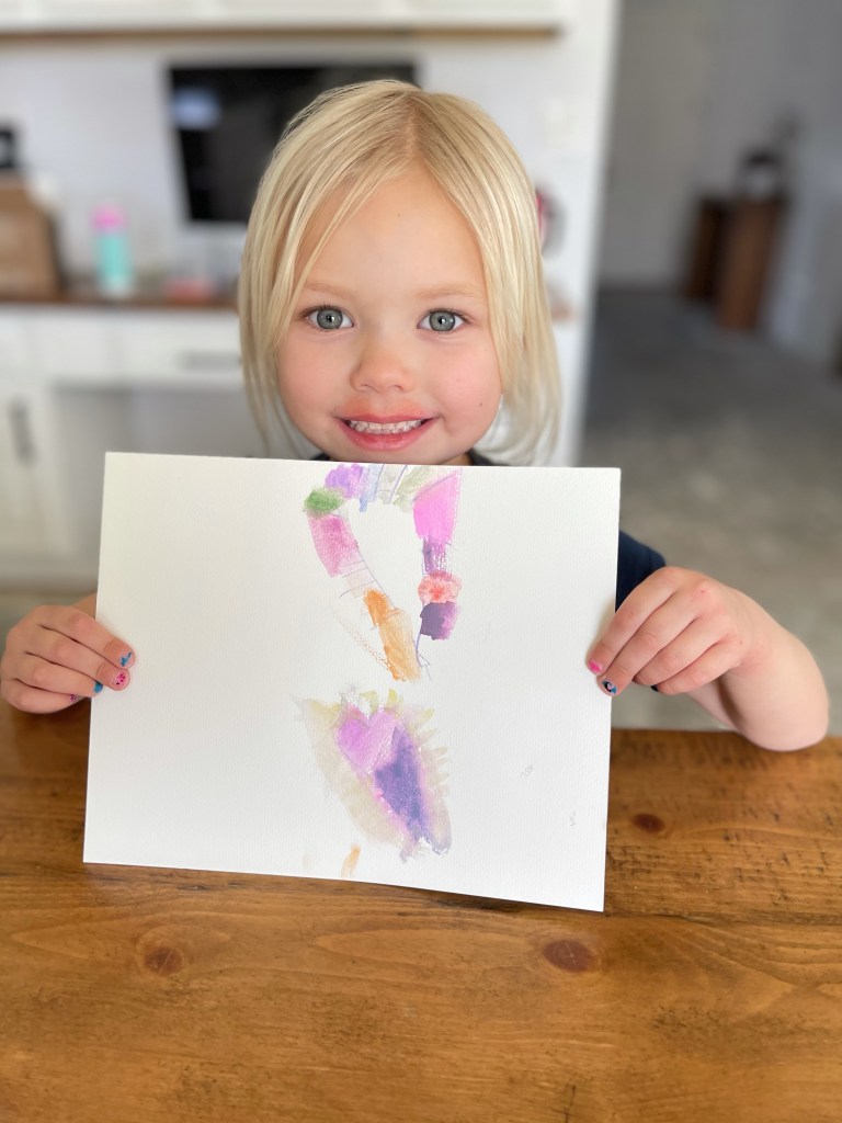 Our preschooler did her own spin on our project. Looking all cute and proud. 😍