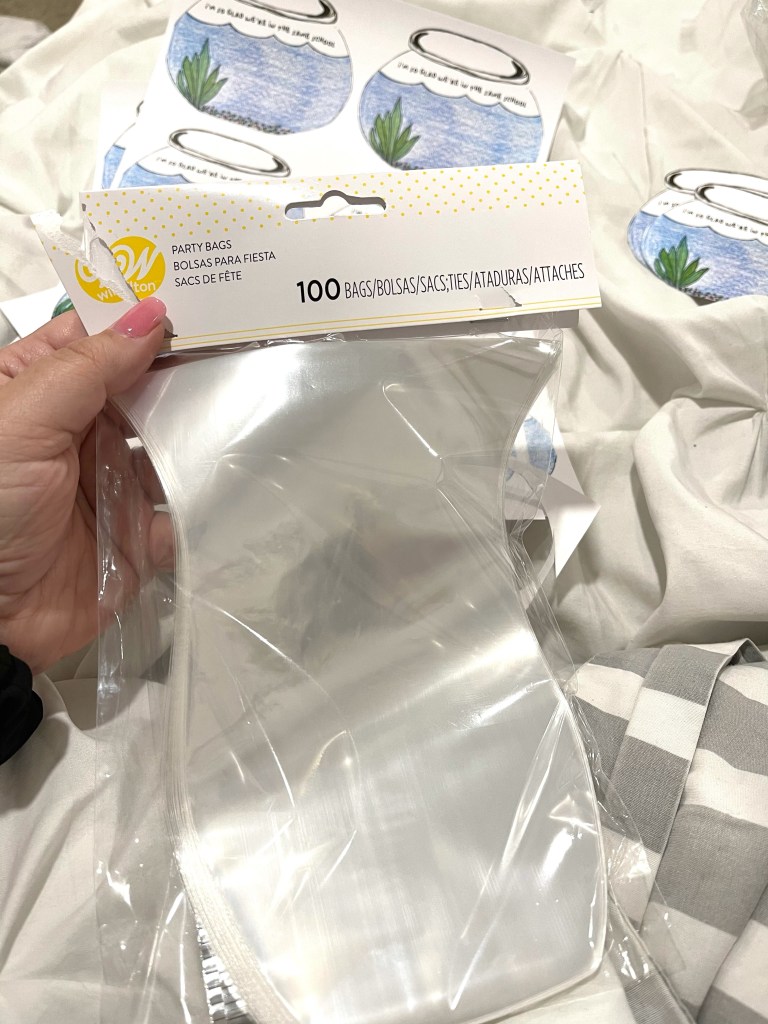 “I’m so glad we’re in the same school” comes in two different sizes and you get BOTH when you make your $3 purchase. Then you get to choose which you prefer to print and can even test them out first if you’d like! The above is our larger print and below is the smaller. I used a bread bag for the larger one and then just trimmed the top. The smaller one I used a vase shape party bag and they fit perfectly in that round base. I added a picture of the bags below for reference, they were purchased at Walmart but I’m sure can be found at just about any store.