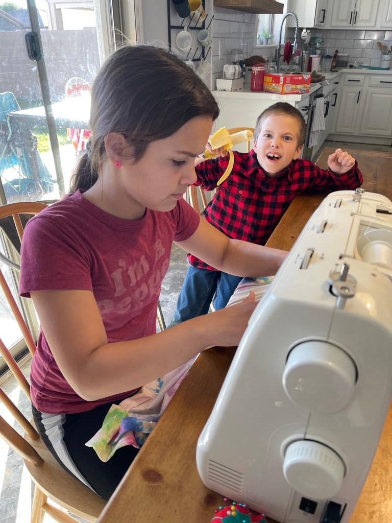 I had saved this project for this time of year thinking it would be fun for them to get cute valentines day themed material but all of them choice differently. Oh well, they LOVED what they picked and that’s what it was all about. I’m super impressed with their ability to sew a straight line and they only jammed up my machine once so…HOORAY! I think they are ready for the next step which is pajama pants, then they will have to follow an actual pattern. Wish us luck, I’m not great with patterns myself so this might get interesting. š