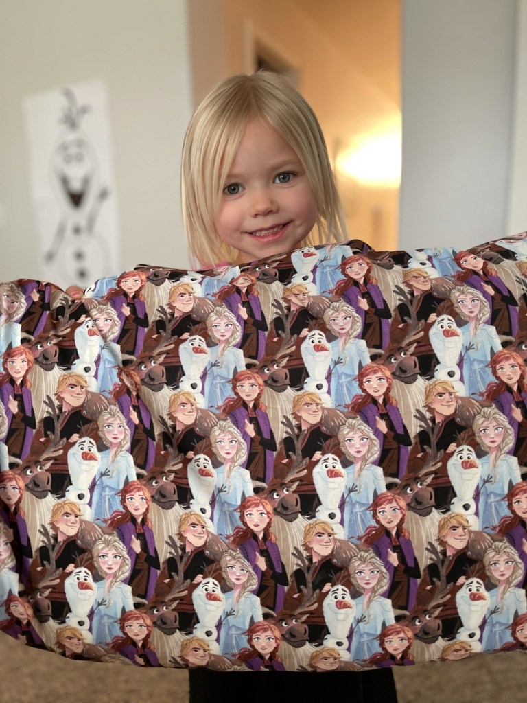 Zoey isn’t quite ready for the machine yet but she still got to pick out some material and I used hers as our example. We would read the directions, they would follow it piece it together for me and then I would do the actual sewing with hers so I could show them what to do. Then when it came time for them to do their pillows they could do it all with very little input from me.