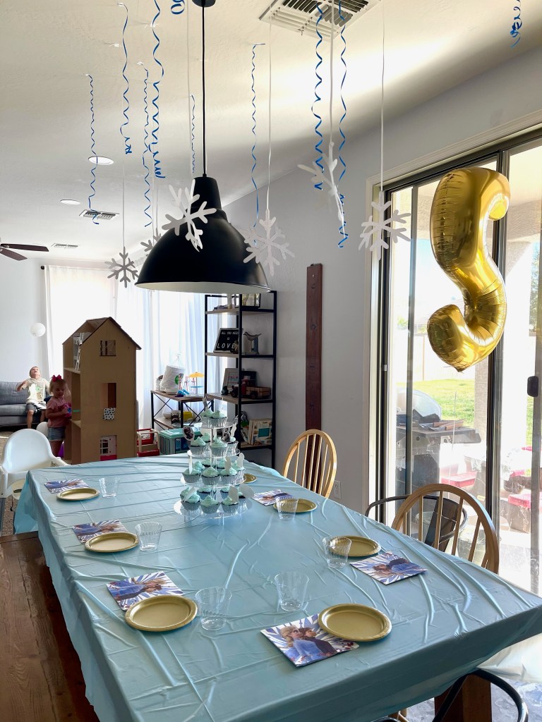 I want to start this post by quickly explaining what type of birthday parties you will find on this blog. As a mother of 6, I throw a lot of parties. Some are bigger than others but what I have learned over the years is that the “middle tier” birthdays are the BEST! You are hear the explanation of “kids don’t care about their party, they just want friends and presents” and maybe that is true for some kids but I will respectfully disagree when it comes to my family. Our kids look back at their birthdays and although they were just as appreciative as the parties where we just had friends, pizza and a movie night, the parties that they talk about with childlike excitement and want to watch home videos from our the bigger parties. With all that being said, we have years its just not in the cards to do a big birthday, and we have years where we have fun with themes and make the most of it but I have definitely learned over the years that there is ALWAYS more you can do. Ways you can make it bigger and better and I just work hard to find the balance of making them fun, but they don’t have to be perfect and they don’t have to be extravagant. With that being said…here is our Frozen 2 (which is really just a Frozen) party.