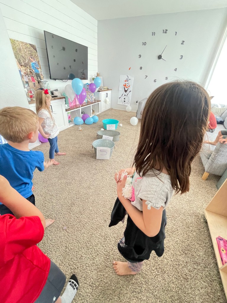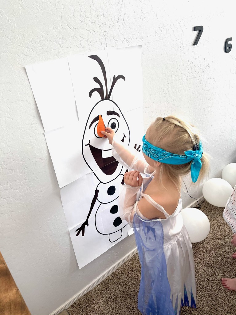 We also played the classic game of pin the nose on Olaf which I got HERE, She did a great job at making it easy to print, tape together, hang and play. THAT is a middle tier party 5 star find…it looks like I put in so much effort for my daughter’s party but really I got it FOR FREE and took minimal effort on my part. Thank you, The Purple Pumpkin Blog!