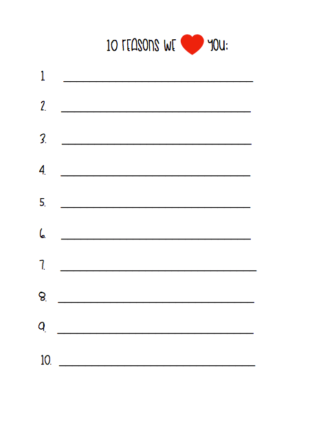 Here is the printable version of the 10 Reasons We Love You if you are interested