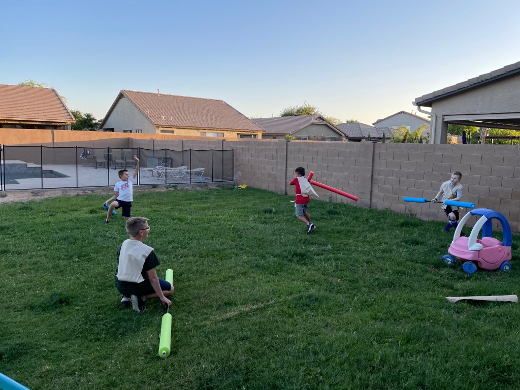 After they finished making their light sabers they went to battle. When hit, you had to kneel and wait for someone on your team to bring you back to life. There was no real “winners” with how we played. We just played until it was time to move on to the next thing.