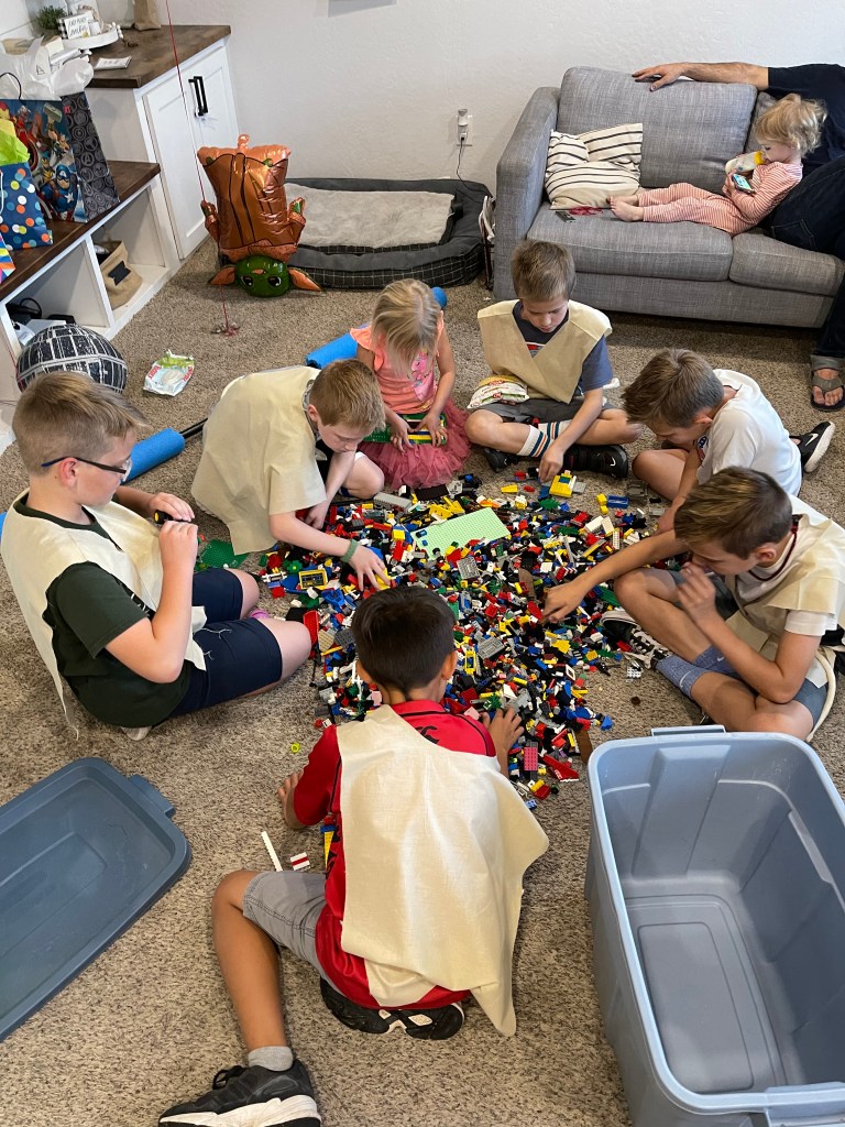 The next activity was all Parker’s idea. They had 20 minutes to build a Star Wars themed item and then they simply went around and showed what they had come up with. It was so simple but they had a blast and it was fun to see their creativity at work. After that we did pizza/eating, presents, cake and then they wanted to go back out to battle again until parents came home.