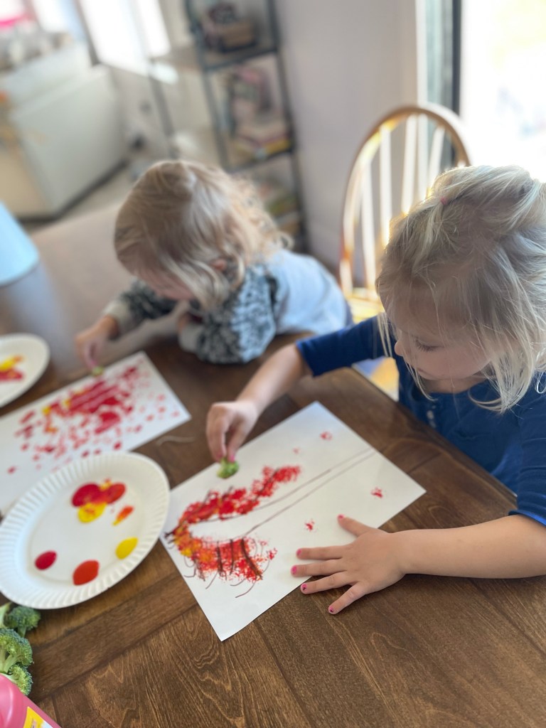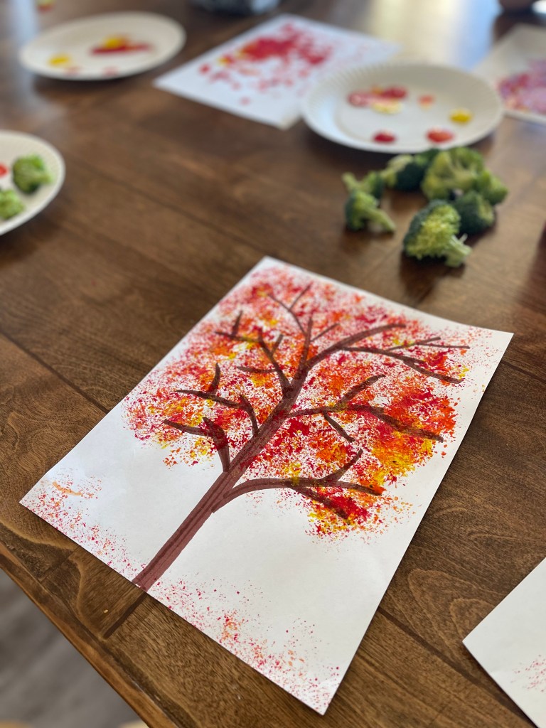 Broccoli stamped trees! SO fun, SO easy and LOVE the way they turned out.