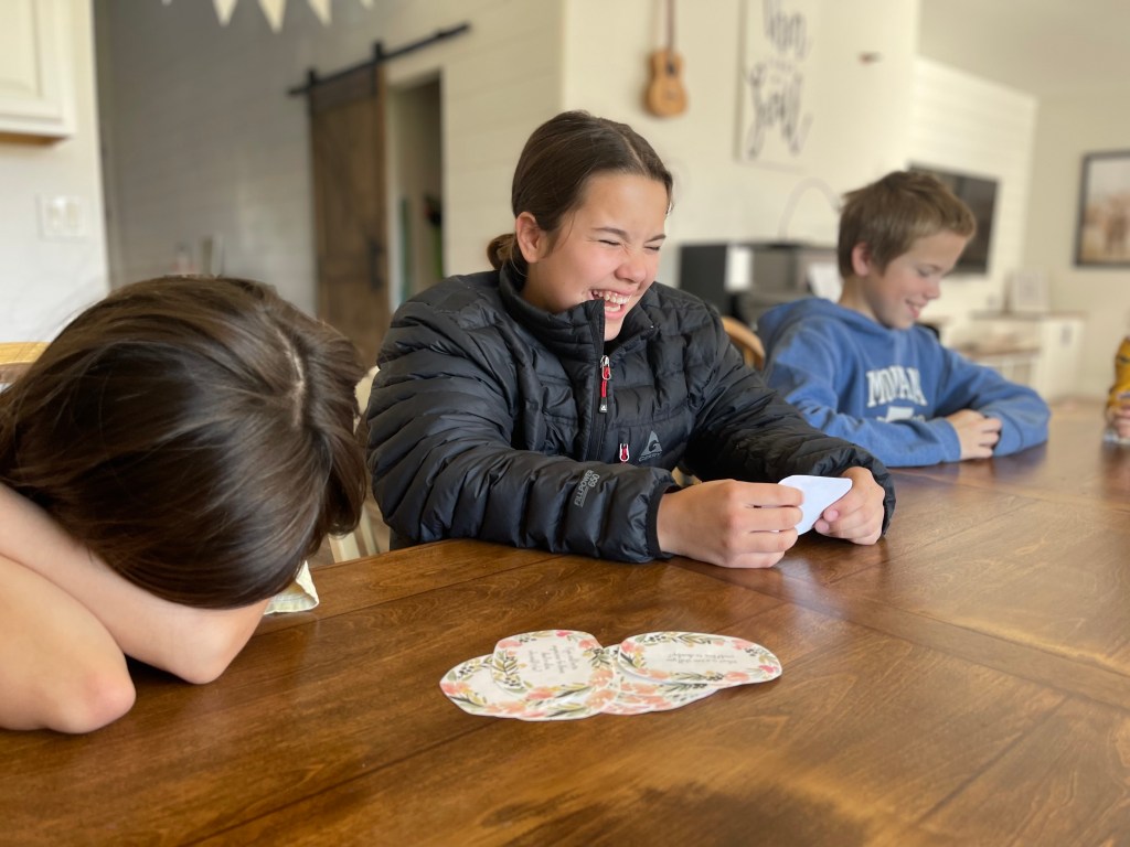 Some questions are silly, some are deeper. There is a total of 12 questions and it took our family a few nights to get through them all because some lead to some pretty long conversations. With that being said, if you are using these for a one night thing you might want to have two jars, one with your first choice picks and one with the “backup” if the first round goes quicker than you thought 🙂