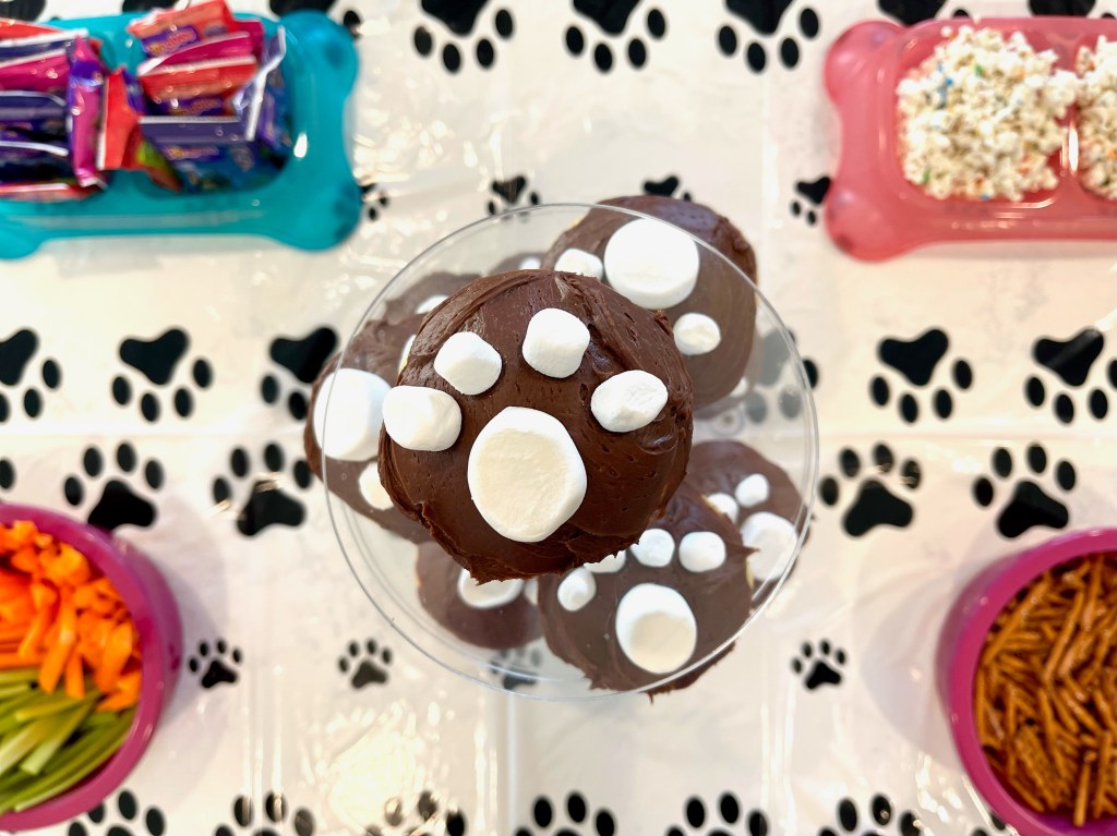 Next up, cupcakes! I wanted to keep it simple this time so we stuck with the paw print theme using large and mini marshmallows. I usually always make homemade frosting on a from the box cake but this time I did box cake AND canned frosting and per the usual, the kids didn’t care 😁