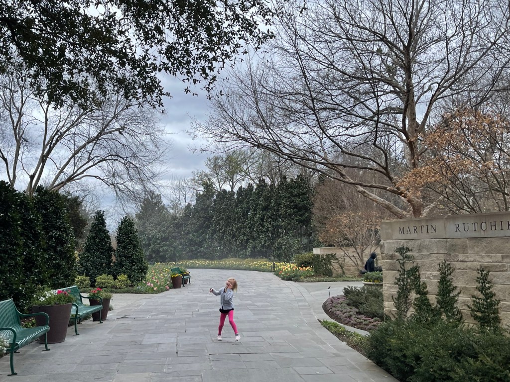 I know this is a bad quality picture from my daughter’s much older phone but I had to include it so you can see how beautiful the surrounding area is just outside of the gardens. That is White Rock Lake in the background there.
