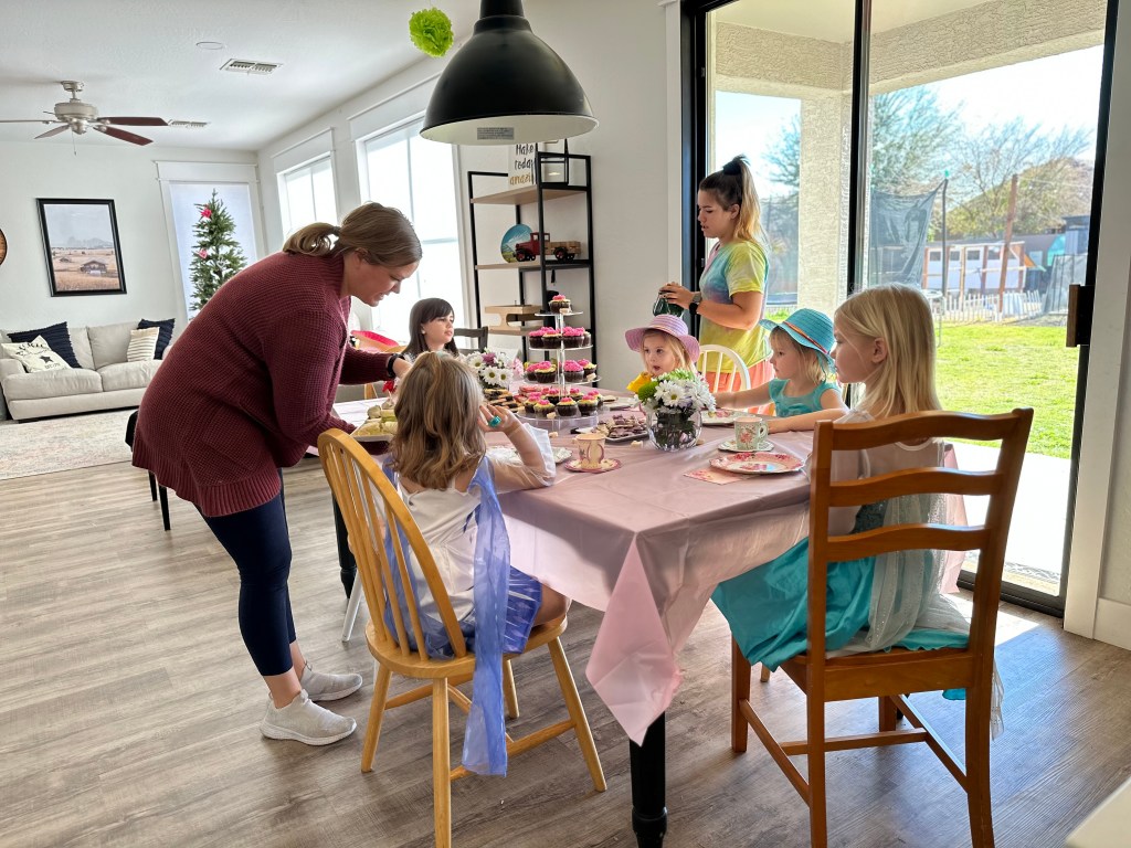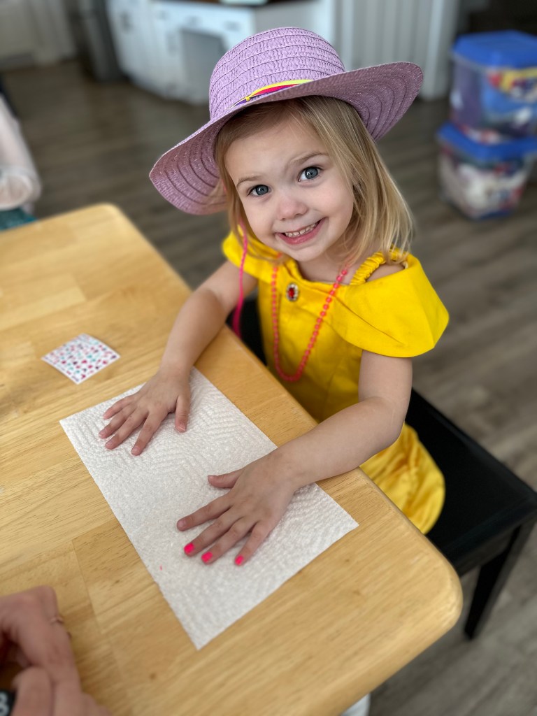 The older girls also painted their nails, did the hair of those who didn’t want to wear a hat, and helped them pick out a dress they could put on. With 5 girls in our house we have PLENTY of dress up options so we just brought down all of our dress up buckets and saved spending any money there. If this is not the case for you, I suggest just recommending the party attendees come in fancier attire so your money can go towards other aspects of the party.