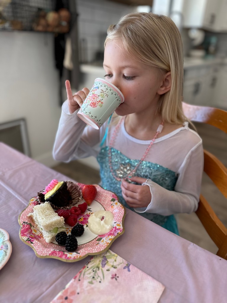 The kids did not care that they were not real. They were “clinking” their cups all throughout the meal, which I’m pretty sure is not actually done at tea time but they were loving it so we rolled with it, and feeling so fancy drinking with their pinky up and asking for refills.