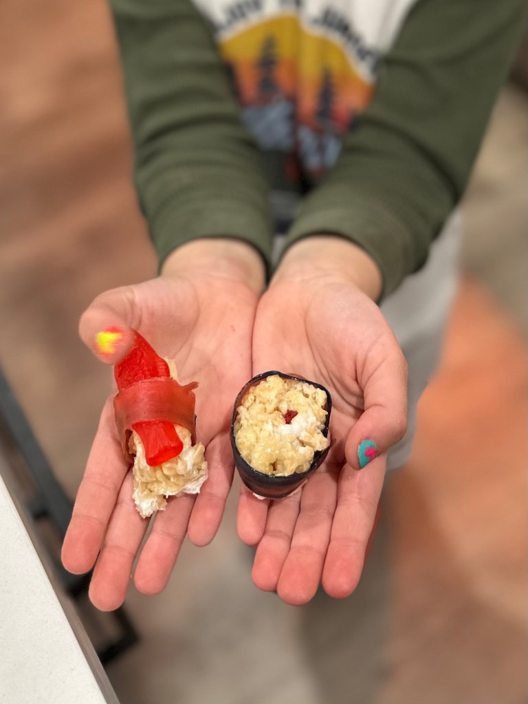 Chinese New Year was a fun one too. We ate “Chinese” food, I say Chinese food loosely because it was very Americanized :). We read facts about Chinese New Year: why the celebrate it, what some of the traditions are and why, etc. The kids made a paper dragon and we made dessert sushi to finish the festivities.