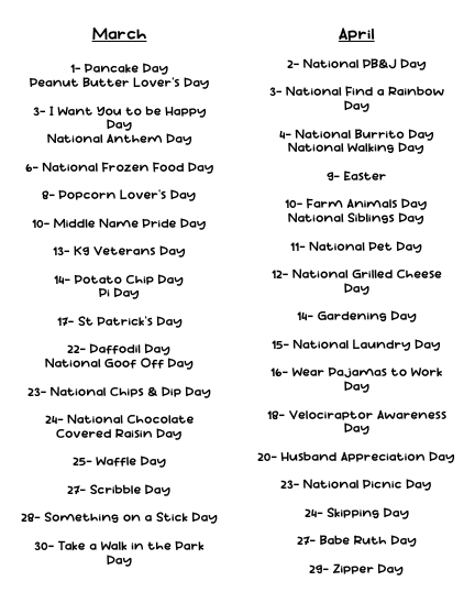 Most of these are pretty obvious how you would “celebrate” them, but for some of the less obvious ones, here are some ideas: