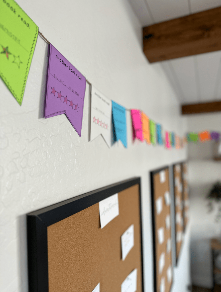 All in all, we’re happy with our reading banner and the encouragement it’s giving us to keep reading. I love that we keep it in our dining room so we can regularly talk about the books we’ve read as we eat dinner and are reminded of the new pieces we added to the banner. Whatever it takes to continue to instill a love of book in our kids, right?! Happy reading!