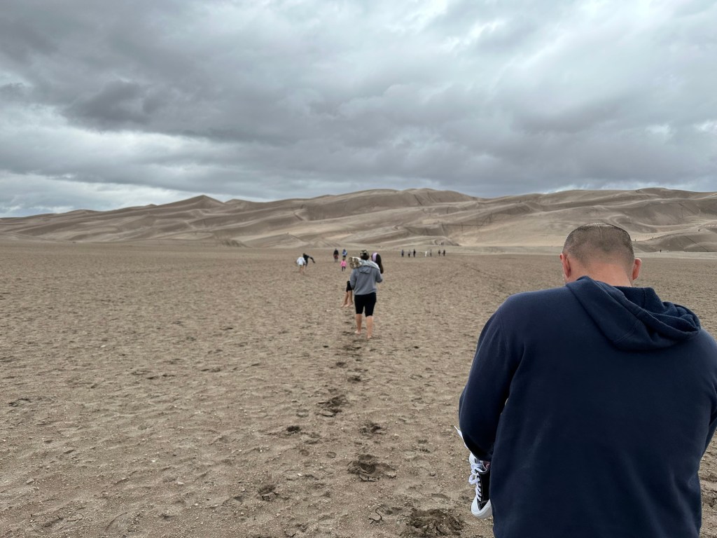 It’s just incredibly beautiful! We didn’t climb to the top of the highest dune this go around, but we hope to go back another time to do so. For this trip, we had another stop to make that day at Bishop Castle so we decided to get back on the road. This time though, we put our shoes back on to walk through the pebble terrain and then took them off to cross the water and put them back on when we got to the car. Lesson learned! š