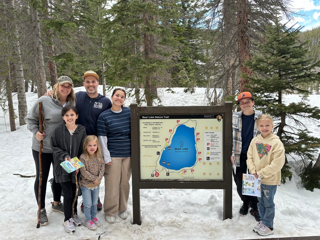 While there, we decided to at least work on the Junior Ranger Program rather than just jump right back in the car and leave. All the other hikes I had planned were even further up the mountain so we decided to just head back down since they would probably be too hard for us to do in our Arizona attire. Next time we do Rocky Mountain National Park when know to go with the crowds in the middle of the summer or wear snow boots! š